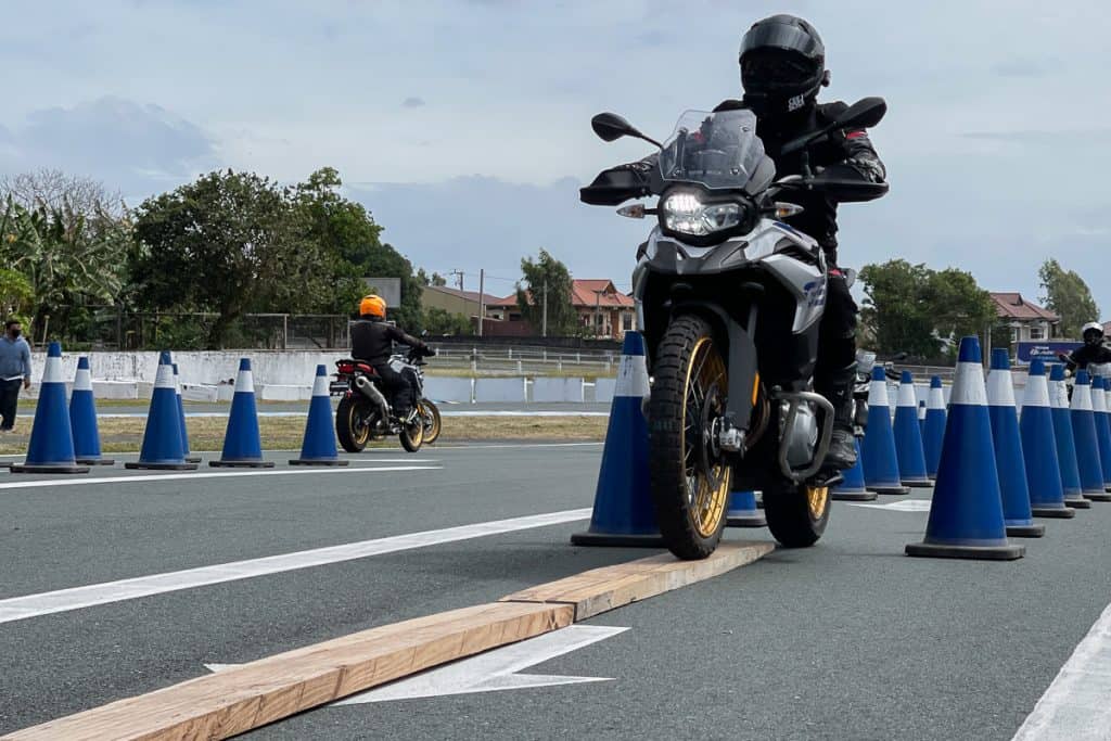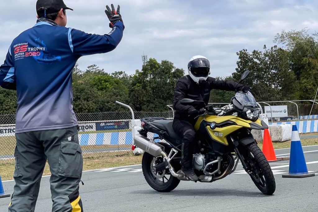 The first exercise didn’t involve us riding on the saddle just yet. With the bike’s side stand folded, the coaches wanted us to balance the heavy BMW F750 GS and BMW F850 GS using just the tip of our fingers. They said it’s essential for us to find the bike’s center of gravity first to get more acquainted with the machine before the drills.