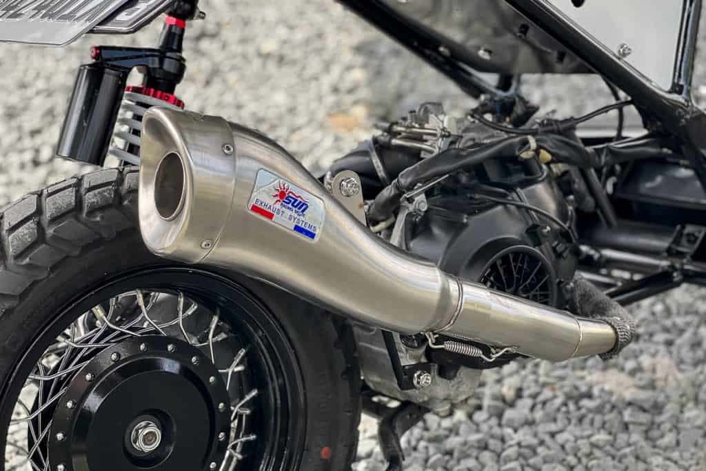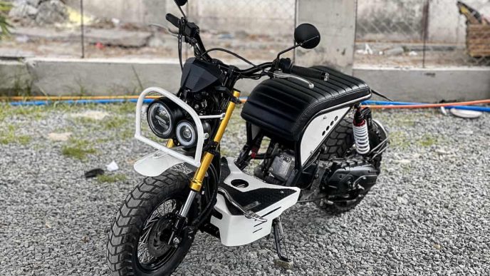 With an P80,000 budget for the build, including parts and labor, the WALL-E-inspired was given a custom subframe, fenders, headlight bracket, alloy wheels, side panel, step board, seats, and paint job. The rims are wrapped in Pirelli tires, while LEDs populate the lighting systems. There’s a pair of bar-end signal lights, too, which add to the coolness factor of this build.