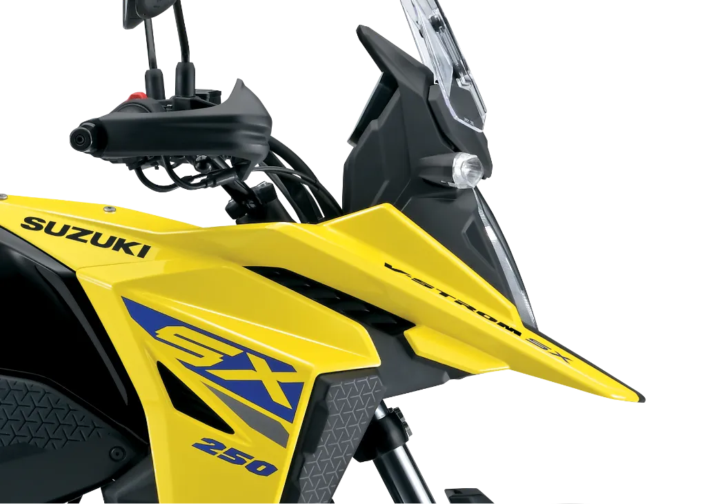 Being the smallest in “The Master of Adventure” lineup, the V-Strom 250 SX resembles the bigger members of the V-Strom family, particularly seen in the lighting elements, beak-like front fairing, and the windscreen. Even the color was adopted from the bigger brothers, namely the Champion Yellow.