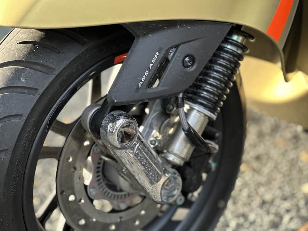 Surprisingly, the GTS 300 SuperSport lacks a parking brake, which could be inconvenient for preventing rolling when not on its center stand.