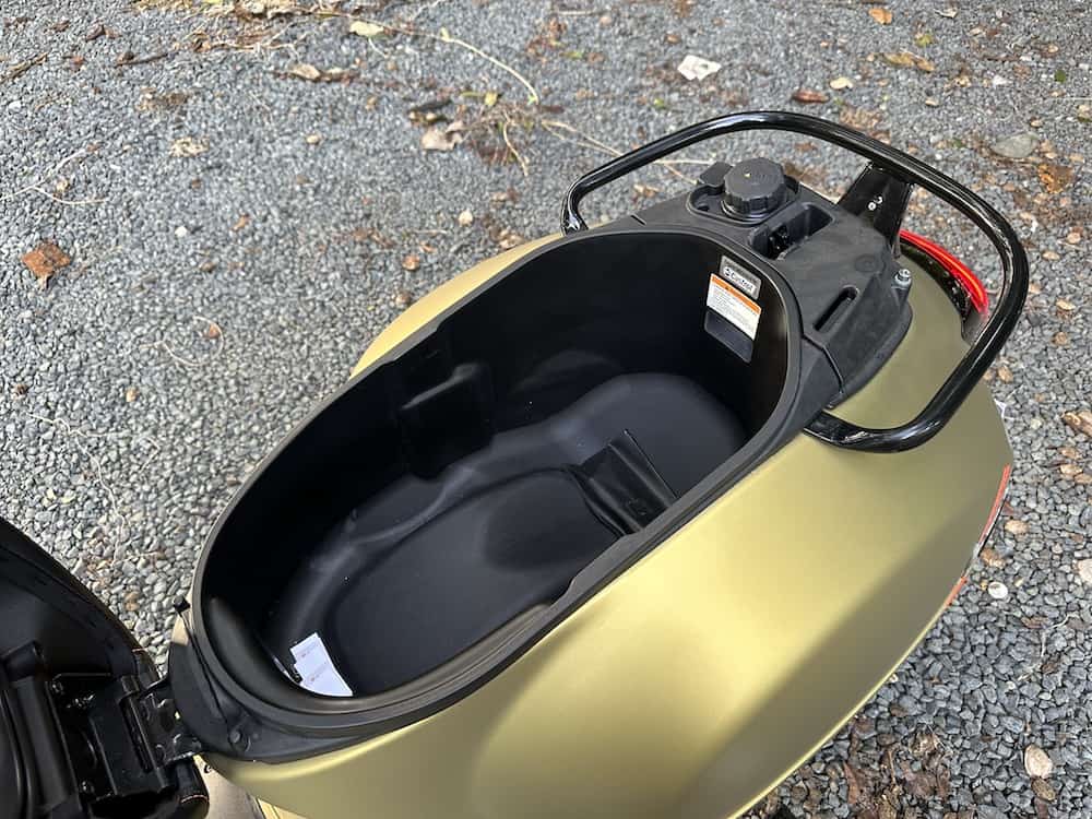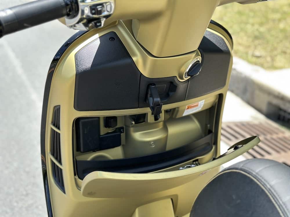 Storage, though ample, is not without its quirks, as some compartments lack sufficient padding, potentially leading to scratches on stored items. Furthermore, while the engine vibration at idle is a minor concern, it dissipates as the scooter gains speed.