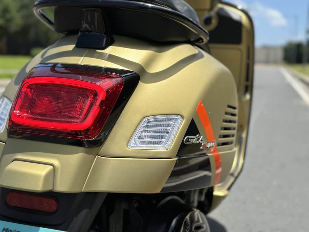 The GTS 300 SuperSport is a striking urban scooter that seamlessly blends classic Vespa styling with modern features. The scooter’s standout feature is its stylish design, particularly in the eye-catching Green Olive Matt colorway of the test unit, paying homage to Vespa’s rich heritage while exuding a contemporary allure.