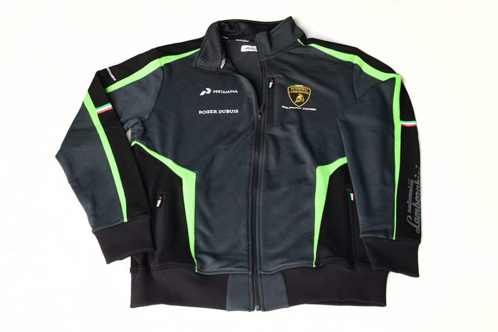 A nod to the sleek paddock uniforms worn by the Lamborghini racing team—“squadra corse”—it casually suggests dynamism, if not Italian style.