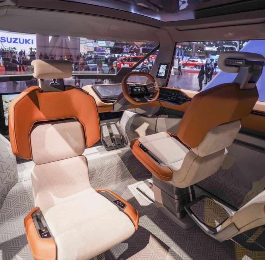 Panoramic seats that rotate and move up and down, and a front window and see-through hood that provide an open, wide field of vision create an aerial cockpit, offering an unprecedented driving experience. The front seats can be rotated backward to create a space where all occupants can enjoy face-to-face conversation.