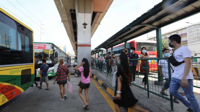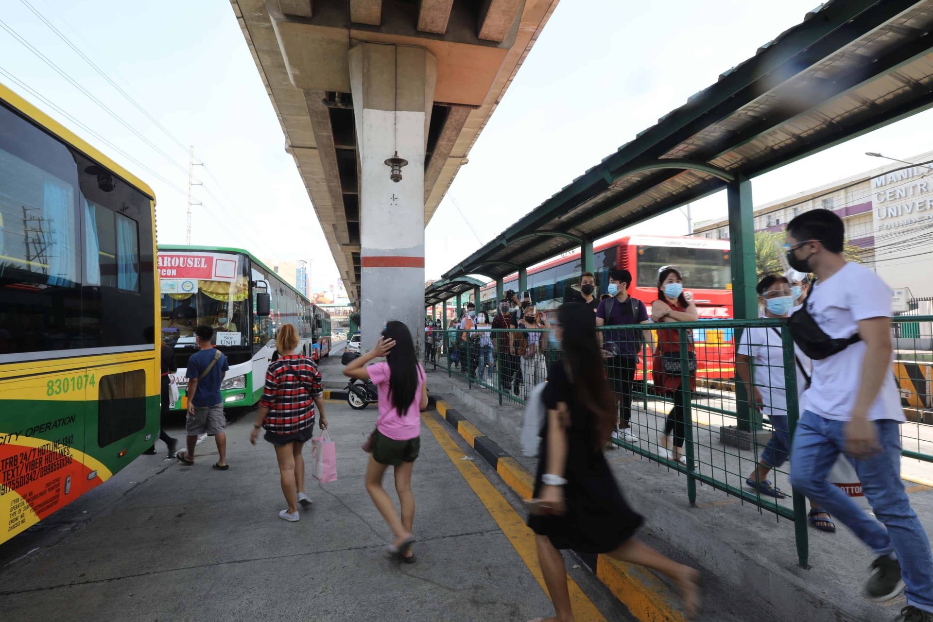(June 30, 2021)........Passengers at Edsa Carousel in Monumento queue for the last day of free ride due to expiration of Bayanihan 2 ......Photo/Boy Santos