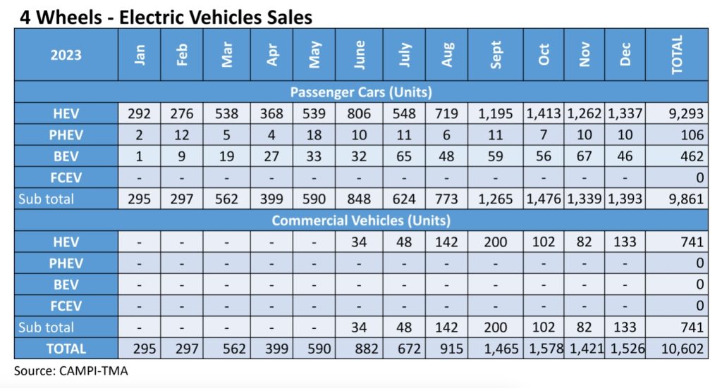 For 2023, EVAP shared CAMPI’s report. There, it listed 10,602 new electrified cars for the year.