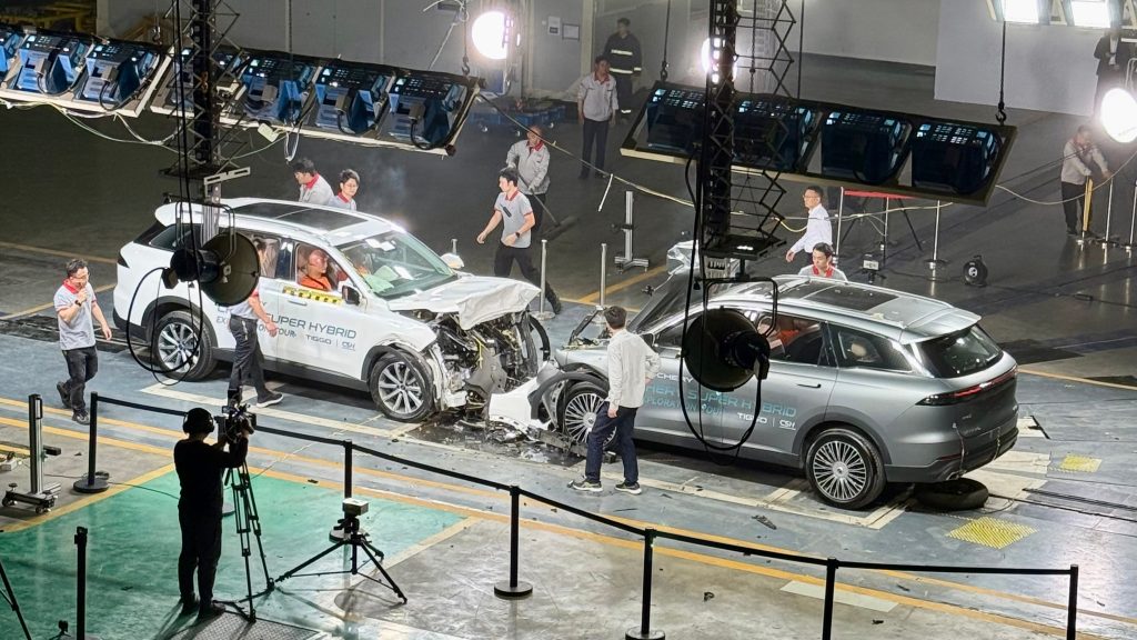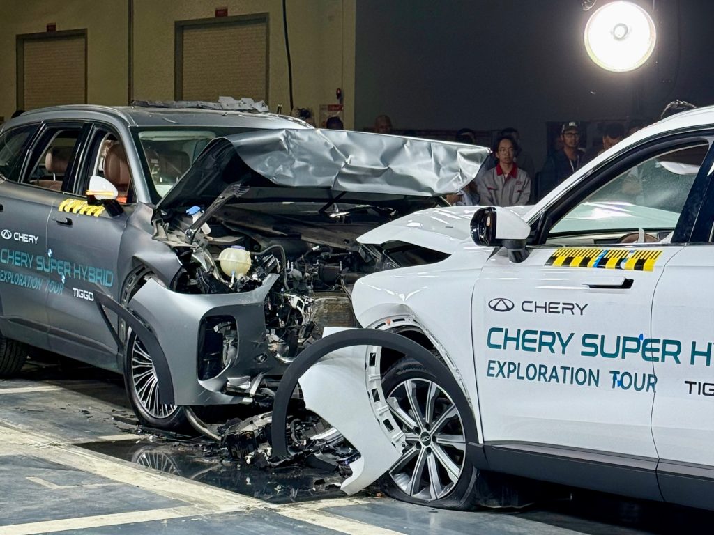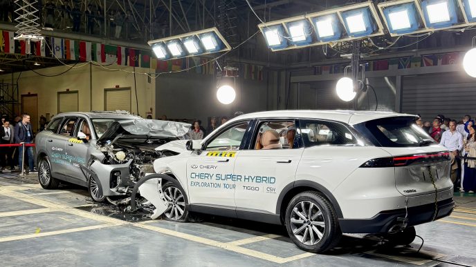 Of course, the highlight of the day was the two crash tests: a full-frontal crash at 56 km/h between two identical Chery Tiggo 9 plug-in hybrid vehicles—the new flagship of the Chery Tiggo SUV lineup that’s yet to arrive in the Philippines—and a rollover test with another Tiggo 9 PHEV doing 68 km/h.