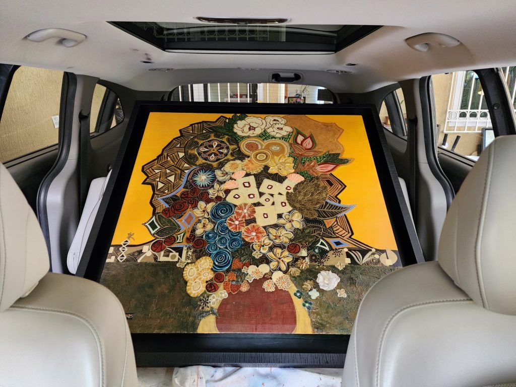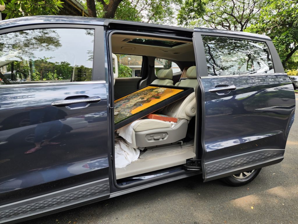 All my pieces for the Leon Gallery International show were reinforced with heavy wooden back panels and frames. All the more I needed a vehicle that enabled me to not only safely transport them, but to comfortably load and unload them. And with a ground clearance of 174 mm, the Hyundai Custin did the job 110%.