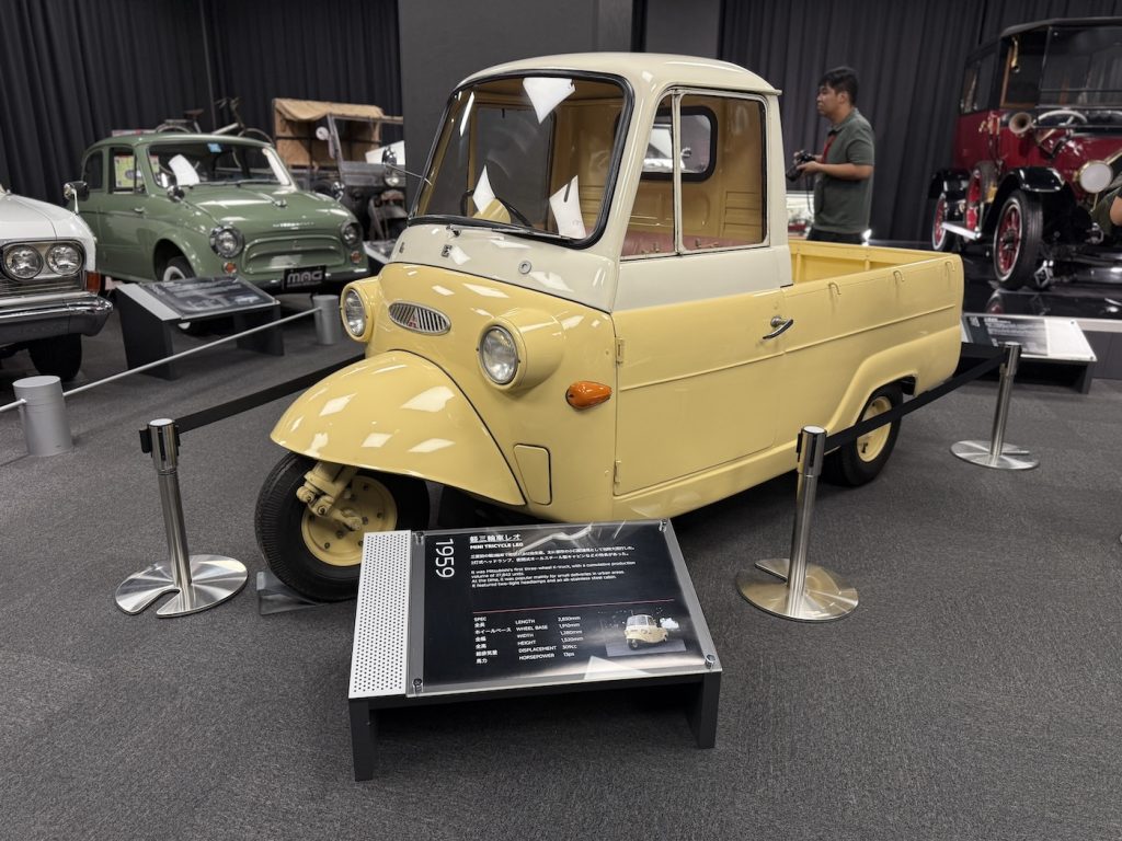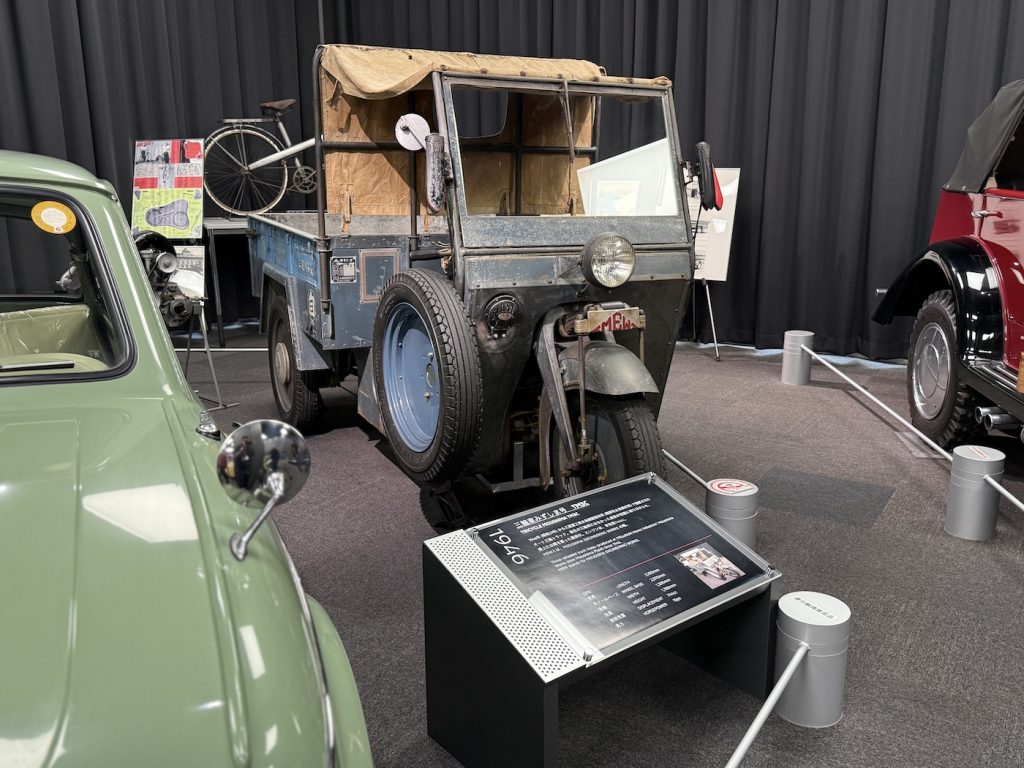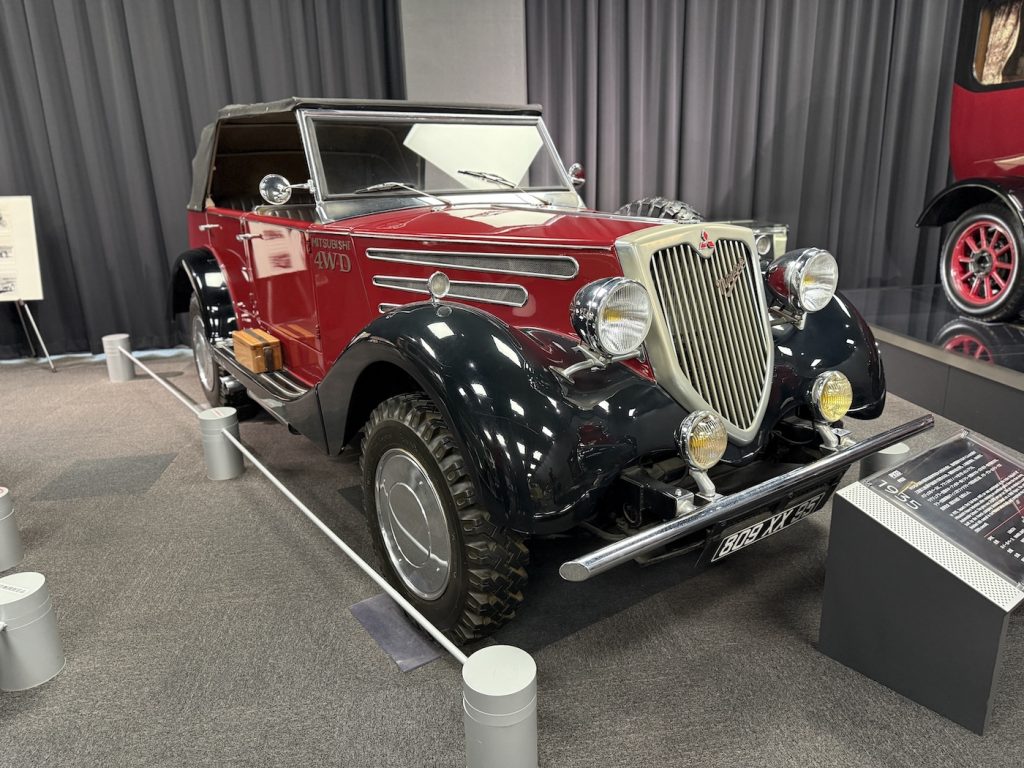 The journey begins with the Mitsubishi Model A (1917) – Japan’s first mass-produced passenger car. Only 22 units were made, all hand-built at the Kobe Shipyard. Its upright wooden frame and carriage-like stance recall an era when automobiles were still novelties rather than necessities. A few steps away stands the Mizushima TM3C (1946), a postwar three-wheeler that served as Mitsubishi’s first mass-produced vehicle.