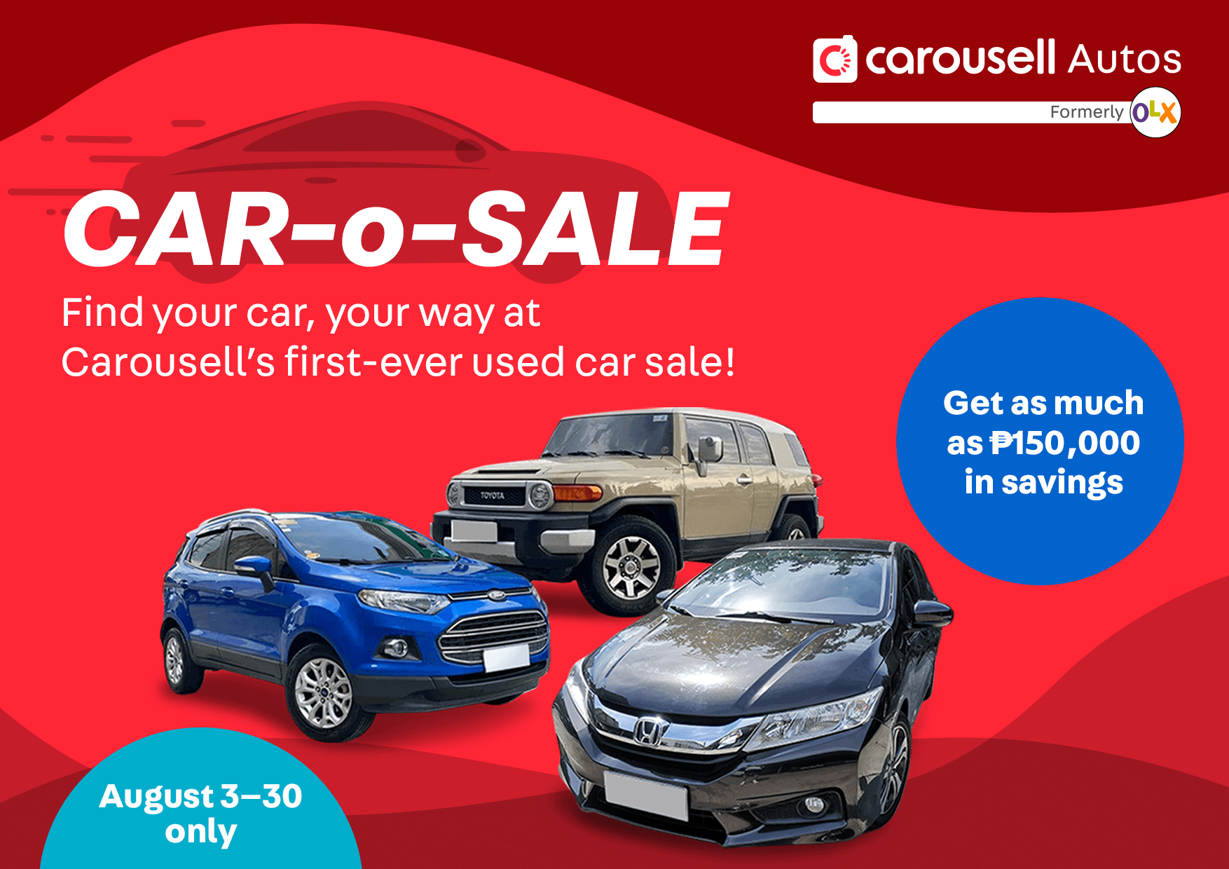 Carousell, one of the world’s largest and fastest growing online classifieds, launches its first-ever used car sale in the Philippines titled “Car-o-Sale”. Through this campaign, it aims to help jumpstart businesses of its automotive merchants, many of which are long time listers since its early days as OLX. In addition, it is set to provide potential car buyers with a wide selection of quality used vehicles from its list of trusted sellers, paired with great deals.