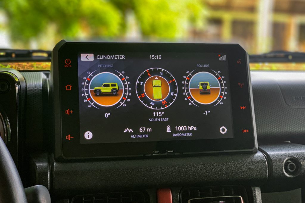 Despite these, the cabin isn’t spartan – no, far from it. Locks are centralized, windows are powered, headlights are LEDs, and there’s even cruise control. But the biggest contrast is the massive nine-inch infotainment with a crisp display. It doesn’t have Apple CarPlay or Android Auto but at least it has a clinometer. Off-roaders would know.