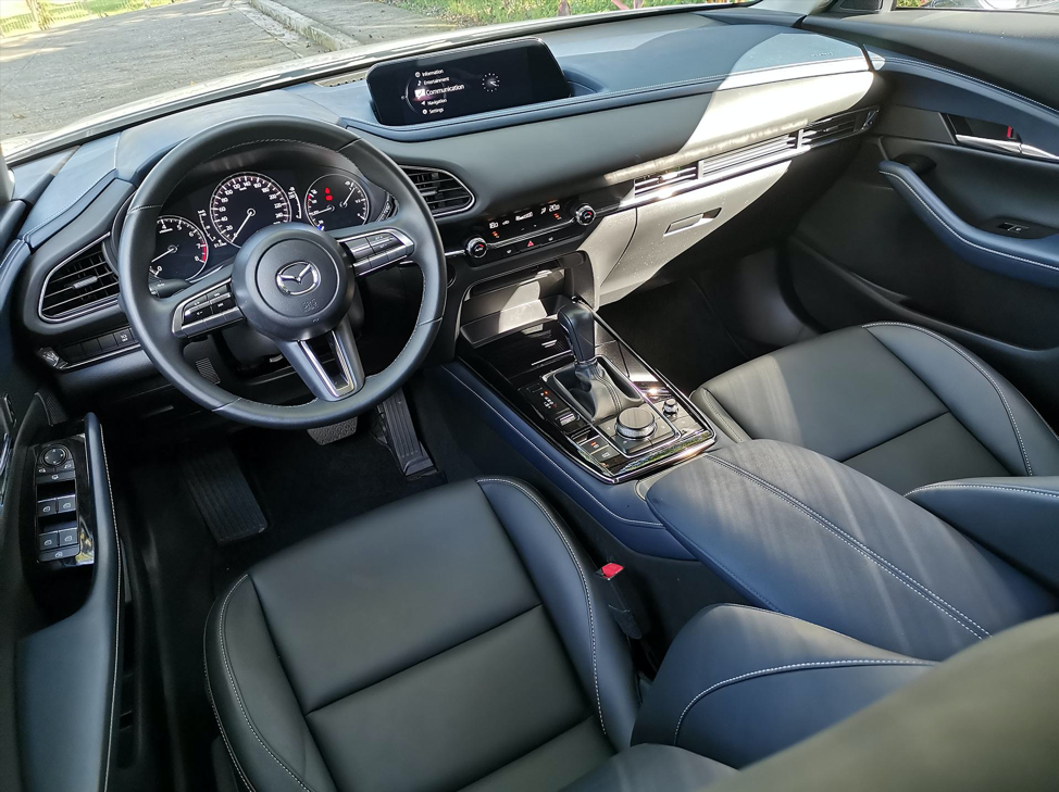 Add to that the tangible prestige of my CX-30 FWD Sport test unit. All contact points are clad in leather. The steering wheel, door panel armrest, center console, shifter, seats, even the resting place for the driver’s right leg has the lightly padded leather trim. The buttons click softly and the rotary knobs are tactile at every notch, avoiding an accidental overturn when you’re adjusting them on the go. I especially love the vertically placed aircon controls at the center. It’s a lot easier to operate especially when the car is on the move. The aircon itself needs a bit of tweaking though. The disparity between fan 1 and 2 is a bit too much that oftentimes I found myself getting hot at 1, but 2 can be too cold, especially at night. You can adjust the thermostat but the problem is the amount and speed of air being blown, not the temperature.