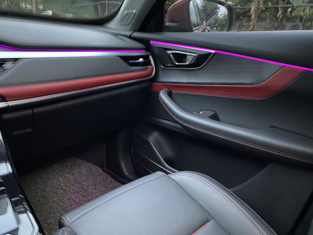 Close the doors and you get a solid thud. Feel the faux leather upholstery and the elegant red-and-gray double stitching—smooth. All the plastics on the dash and door panels are of the soft-feel type. There’s a piano black finish on the console. There are sporty red accents on the dash and door panels as well as red inserts on the folds of the seat leather. The shapes of the inner door handles, armrests and even the doors’ storage compartments have obviously been given a lot of thought. Ditto the beautifully functional dash and steering wheel. There’s even a floating center console (with an ambient-lighted storage area underneath it) similar to a Volvo’s.