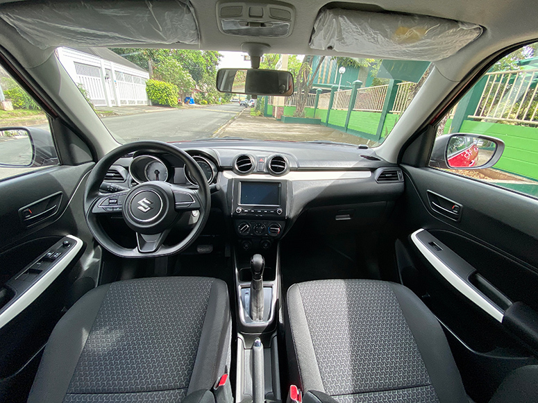 You won’t miss those complicated electronic AC switches with the Swift’s no-brainer three AC knobs (fan speed, thermostat, and air direction). The Swift has a seven-inch USB/Bluetooth touchscreen infotainment/navigation system with four speakers plus a USB port and a 12V socket up front. There are twin cupholders up front and a single one for the rear. There are also bottle holders on all four doors (plus spacious door pockets on the front doors).