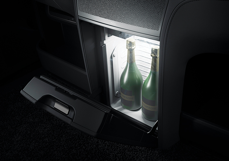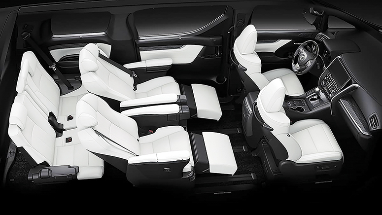 But it’s not all seating comfort and visual art. Typical Japanese thoughtfulness can be seen in the design and placement of assist grips, side steps, and sliding doors, which allow passengers to enter and exit with blissful ease. There is plenty of clever cabin storage for handbags and briefcases on the lower partitions of either side of the cabin. And for the ultimate in mobile convenience—especially on long drives or in traffic—there is also an onboard refrigerator. Despite all of these luxury accoutrements, the LM 350 is also eminently practical thanks to the easy-to-configure interior arrangements even when in seven-seater guise.