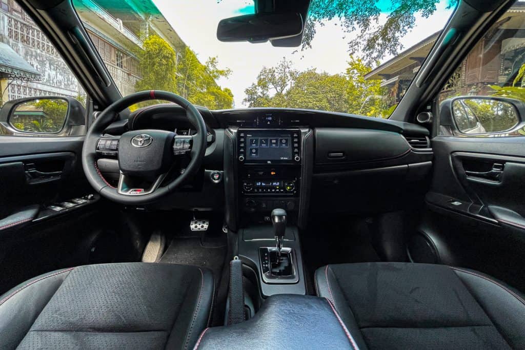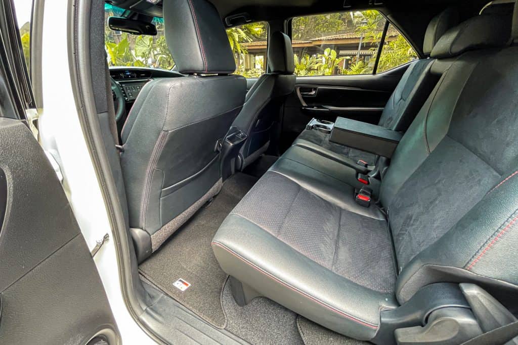 Inside, things are a bit more serious, especially for the Fortuner. While the previous top-spec LTD comes with unapologetic maroon trimmings in the cabin, the GR-S version does away with the contrasting hues. It does, however, come with maroon stitches to highlight sportiness, while matte carbon-fiber prints populate the center console and smoked silver metallic trims complete the highlights in the cabin. The former looks gaudy, unfortunately. Good thing, the suede-and-leather seat combo up to the second row is a thrill, adding a tad touch of premium into the mix.