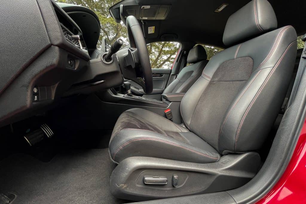 I also like the suede and leather combo for the seats. They keep my buttocks in place during sporty maneuvers, while also benefitting from not heating up when left parked out in the sun. Space has never been the Civic’s problem, and that still holds true with the all-new model. The RS-exclusive black headliner is also one of my favorites.