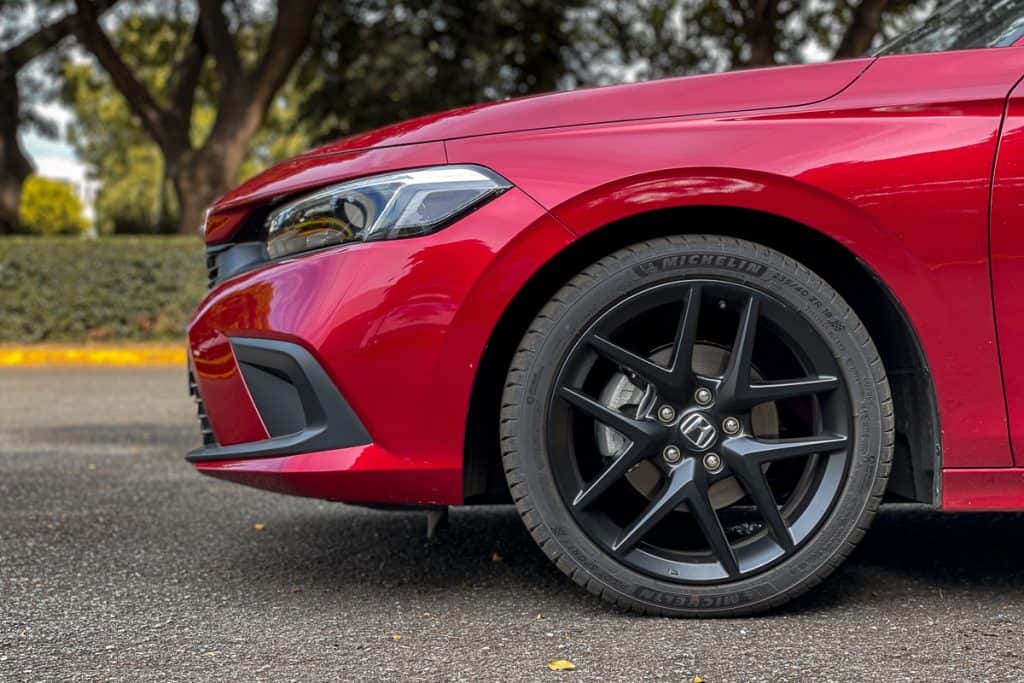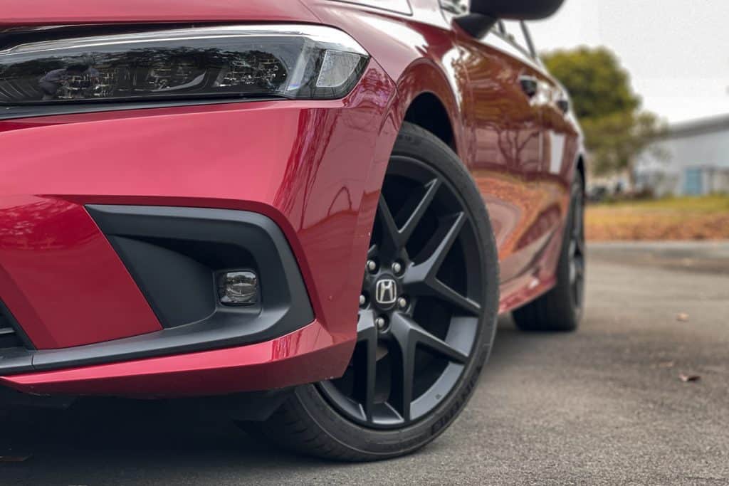 While I like the design of the Civic V’s 17-inch wheels, I love the fact that the RS’s 18-inch satin black V-spoke rims look like an aftermarket set from BBS. That’s a very nice touch.