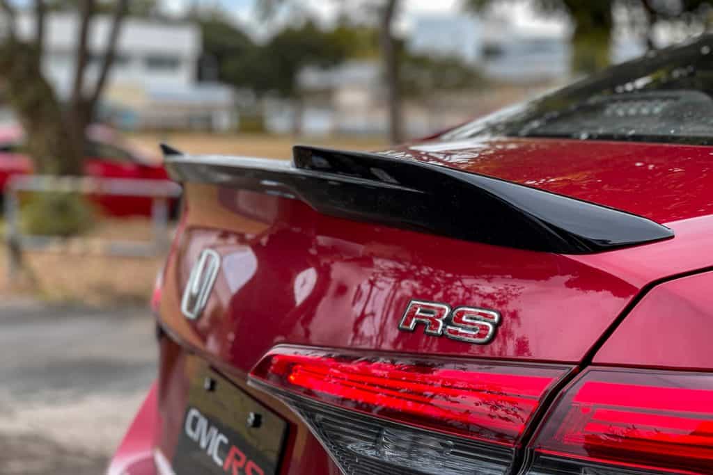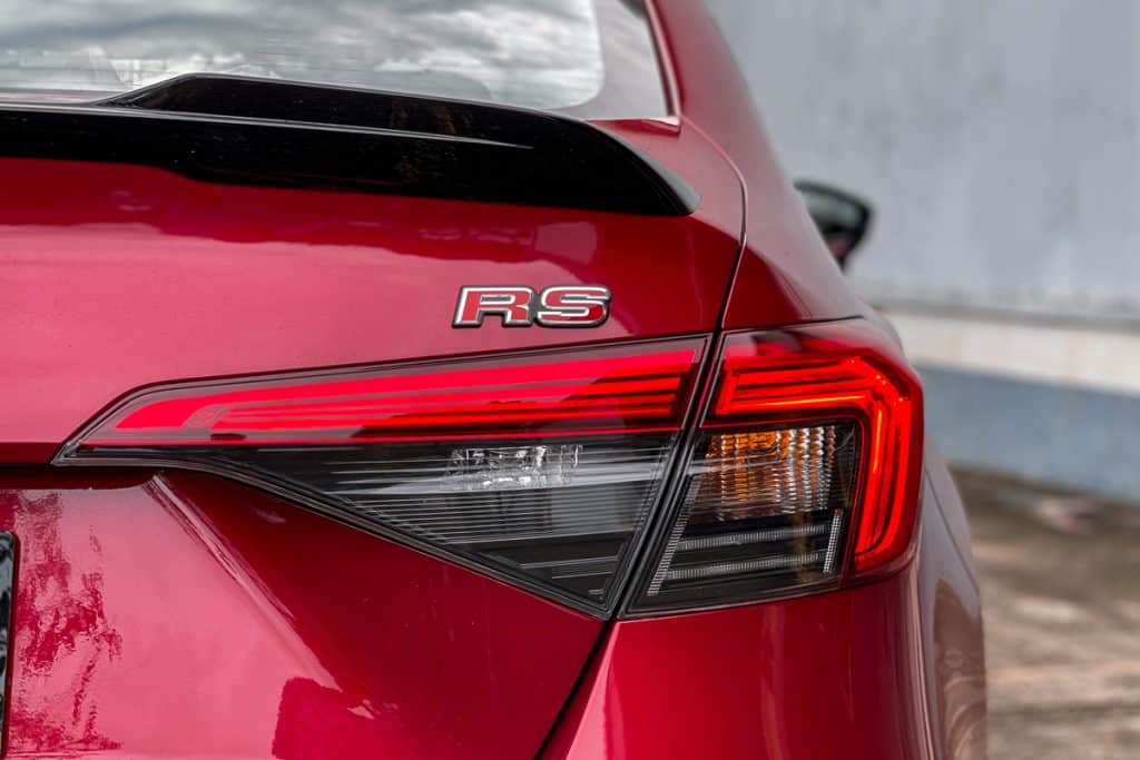 The wraparound LEDs up front are narrower than before, while the non-black nose works better with the dark gray paint. The rear LEDs, on the other hand, reflect the shapes upfront, which is way better in my opinion – as are the RS-exclusive black trunk spoiler and shark-fin antenna.