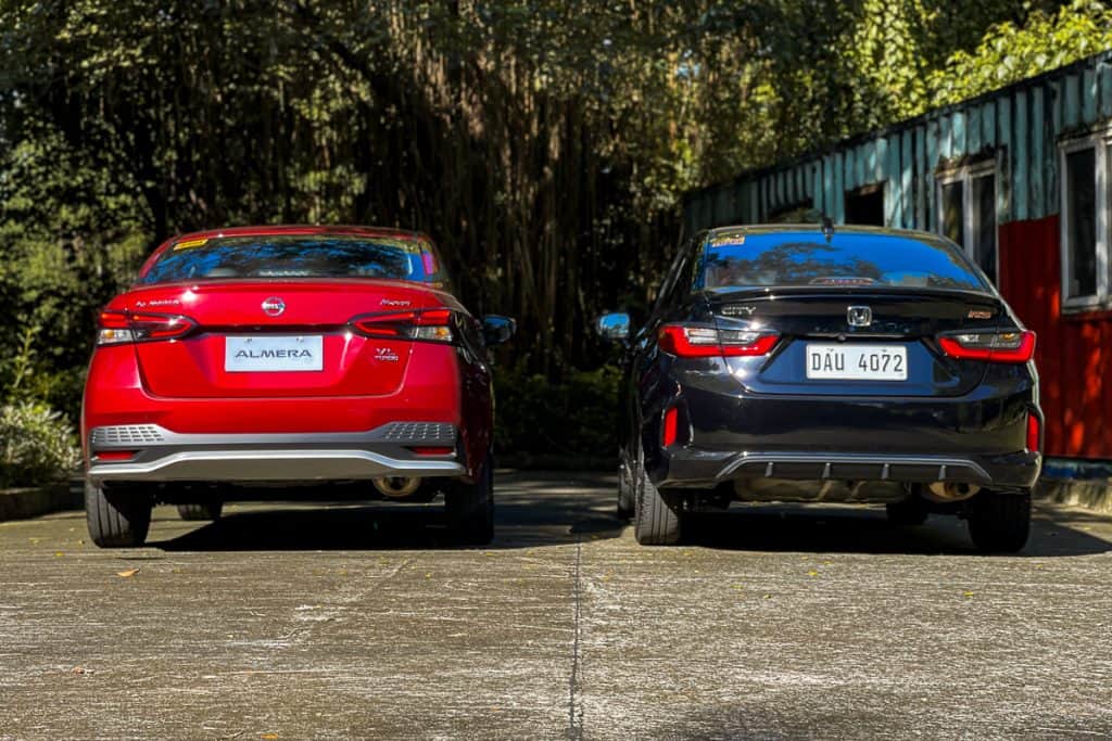 This is a battle between the Honda City Sedan RS and the Nissan Almera VL N-Sport. Both revamped and updated this year, these two small Japanese sedans are closely matched against each other, especially with their pricing.