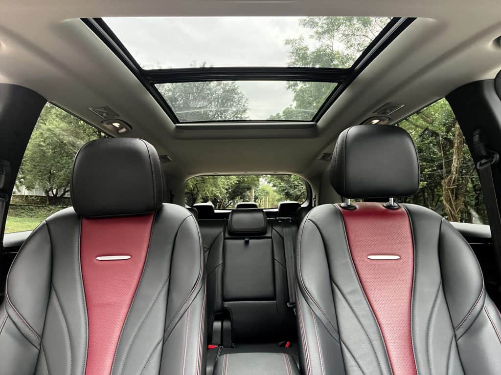 All seats are clad in leather with red accents and the front seats are both powered (6 way for the driver, 4-way for the front passenger). What’s unique about the G50 is on paper, it says it’s capable of accommodating 8 people – 2 infront, 3 in the middle, 3 in the third row. If you just look at it, you’ll have your doubts if the third row can really seat 8 but I’ve tried it with a few people and it’s true to some degree. 3 average-sized grown-ups can fit but will have no space between them. For the chubby ones, it’s better off for two. What’s nice is the legroom and headroom for the third-row occupants.