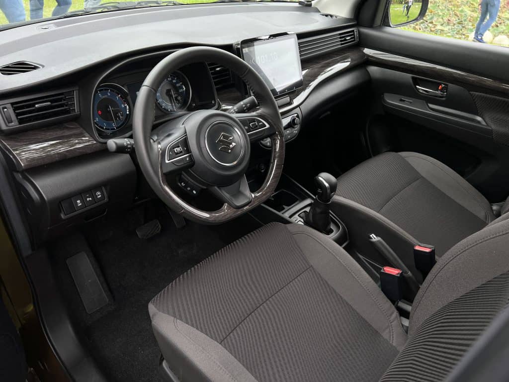 Before we go any further with the powertrain, let’s take a look at other new things with the Ertiga Hybrid. Outside it has a new grille design, the headlights are now automatic, there’s a two-tone 15-inch alloy wheels, and a hybrid emblem at the back.