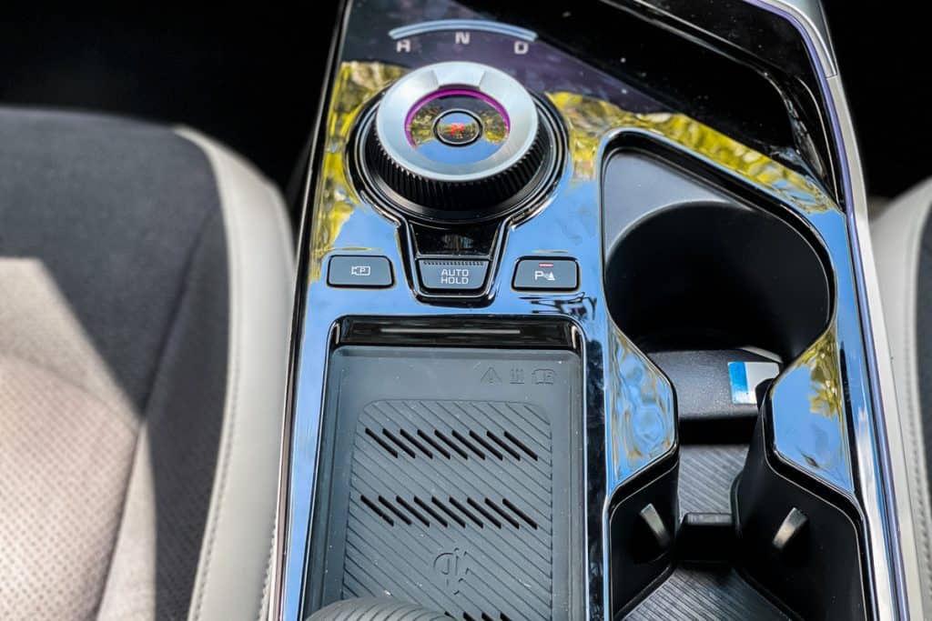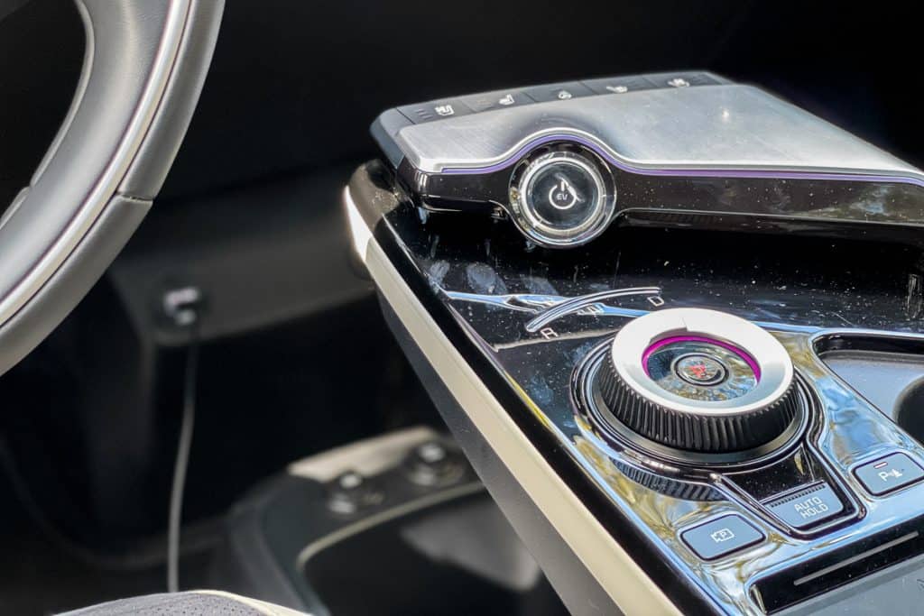 The EV6 also features an Active Sound Design system, which provides a simulated engine sound that is broadcasted through the 14-speaker Meridian sound system. It has three sound options – Stylish, Dynamic, and Cyber – to enhance the driving experience. The vehicle has an assertive front end, 20-inch alloy wheels, LED headlights and taillights, a power tailgate, and a panoramic sunroof. Inside, the vehicle boasts a 12.3-inch digital instrument cluster, a 12.3-inch infotainment system with Apple CarPlay and Android Auto, a wireless charger, a floating center console, a two-spoke steering wheel with paddle shifters, and black suede seats with white leather accents.
