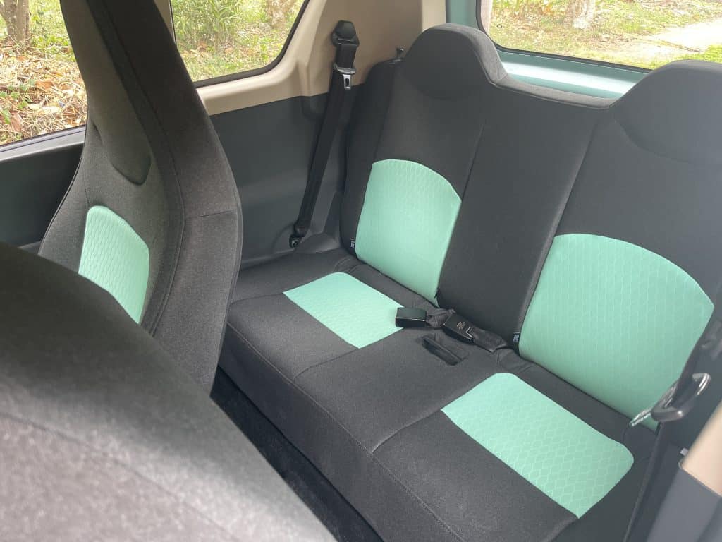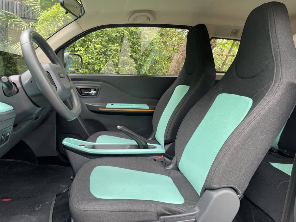 Both Pony EV microcars run on 155/65R13 73H Linglong LMA18 tires on hubcapped steel wheels. The electric motor is mounted in the front while the battery lies on the floor beneath the rear seats. The suspension is actually quite good—it uses independent MacPherson struts up front with a 3-link rigid rear drive axle with coil springs and dampers. So even if the Pony is tiny, it feels reasonably planted and secure up to its governed top speed of 100 km/h. Driving either Pony is like driving a very premium golf cart with a closed cabin, a “Sport” drive mode in the rotary controller, creature comforts, brakes with ABS+EBD (front disc & rear drum), seatbelts and air-conditioning! The steering is fixed and very light to steer as the L curb weighs in at 790 kg and the S at 693 kg. It is driving at its modern simplest.