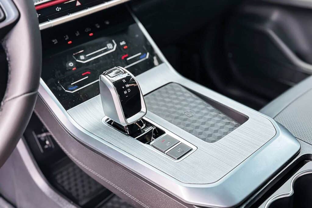 The head unit is complemented by a 360-degree around-view monitor, six speakers, and a wireless mobile phone charger, ensuring that occupants stay connected and entertained on the road