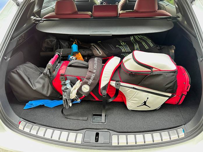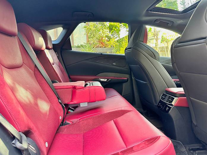 The Adaptive Variable Suspension (AVS), which is standard on the RX500h F Sport, continually and instantly optimizes the balance of dynamic performance and ride comfort. It rides still on the more debonaire side rather than a fierce road warrior even when using the Sport drive mode. The Lexus RX500h uses two electric motors working seamlessly with the eager 2.4-liter powerplant to produce more than 90hp more than the RX 350h. A fairly small 1.44 kWh nickel-metal-hydride battery pack is located under the rear seat and manages electricity of two motors, one between the engine and six-speed automatic transmission with a wet start clutch (instead of e-CVT found in most Toyota/Lexus hybrid/EV models) and the other directly powers the rear e-axle. You don’t feel the instant torque from naught like with the RZ 450e but it also does not behave like a traditional hybrid either. The model-specific upgraded front 6-piston floating brake caliper controlling two-piece vented rotors are appropriately powerful, so much so that you do have to feather your foot from time to time to avoid excessive grabbiness.
