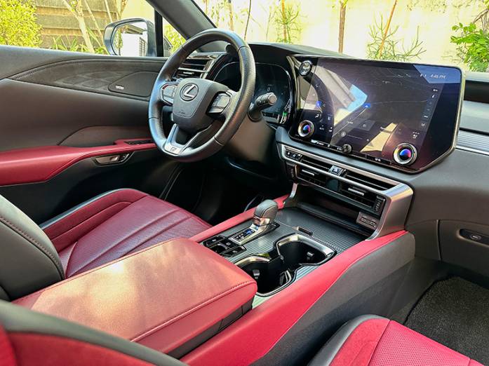 The slightly smaller fully electrified Lexus RZ 450e is still quicker and livelier than the RX 500h but with the larger crossover you have no range anxiety and still get the legal coding exemption. There is very minimal turbo lag, the instant thrust from the two electric drive motors masks any minute lag. The governed top speed is only 210 km/h, which you can swiftly reach quicker than the majority of sedans on the road.