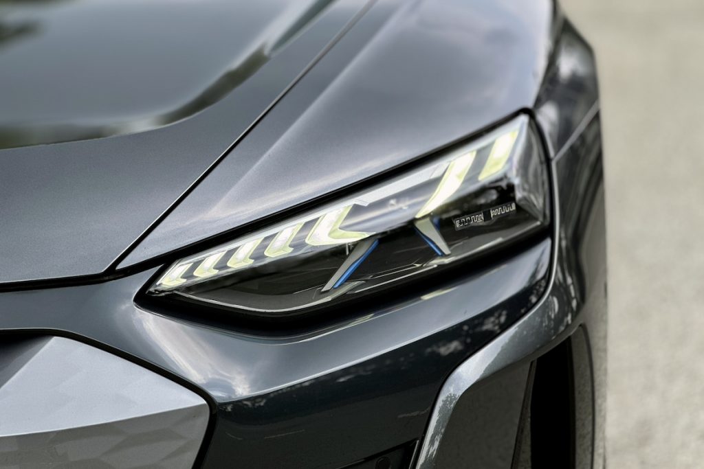 The Audi e-tron GT immediately captivates with its exterior design. One of the first things you’ll notice is the dancing LEDs that come to life when you lock or unlock the doors. This little touch is a thrill every time and feels like something straight out of a sci-fi movie.