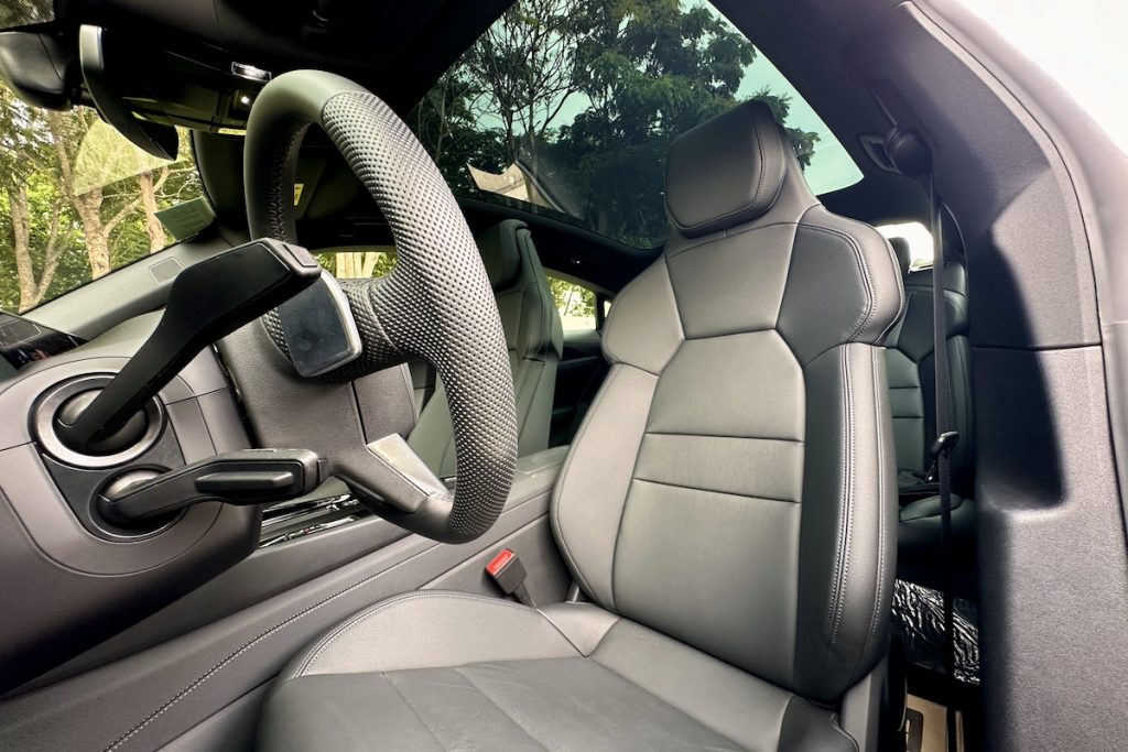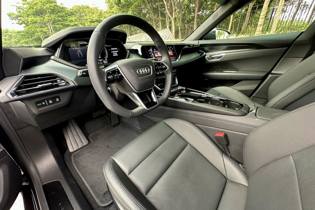 Step inside, and the Audi e-tron GT continues to impress. The interior, typical of most Audis, is straightforward and easy to familiarize with. The monotone color scheme is brought to life with premium materials, including full-grain leather that feels luxurious to the touch. The font on the button labels looks classy, adding to the overall premium feel of the cabin.