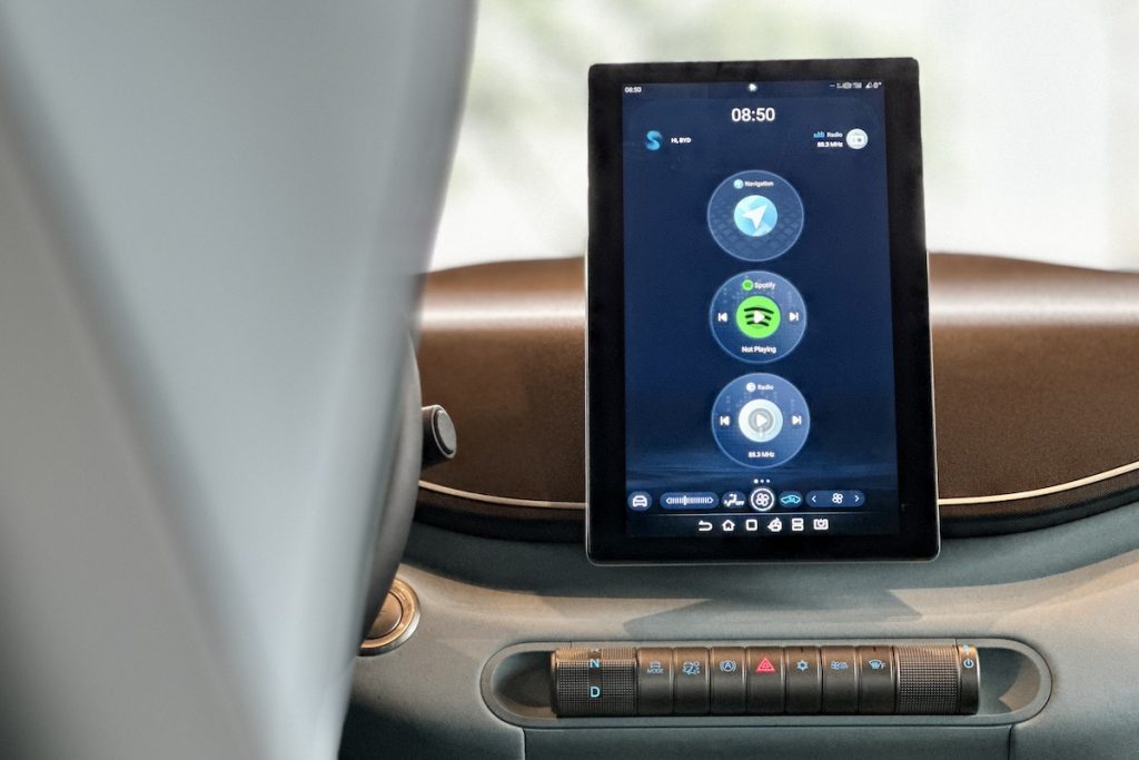 When you step inside, the Seagull offers more than you’d expect from an EV at this price point. The two-tone interior is stylish, and the tech inside is quite impressive. Up front, you get two screens – one for the digital instrument cluster and another rotating 10.1-inch touchscreen for infotainment. Yes, that’s right – a rotating screen. It’s a neat gimmick, but it works well, especially since it comes with Apple CarPlay and wireless Android Auto. Plus, there’s a wireless charger to keep things seamless.