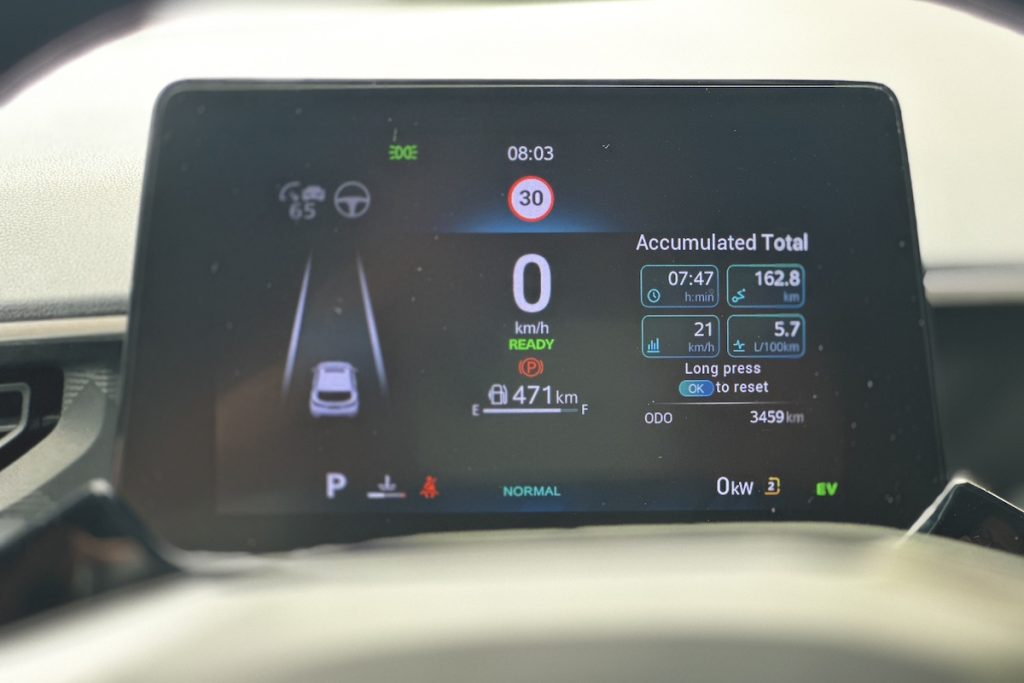 Tech and safety features in the MG 3 Hybrid+ go beyond expectations. It sports a 10.25-inch horizontal touchscreen that, while compact, makes for a clean dashboard layout and is just the right size for this car. I’ll admit, the 360-degree camera view on the smaller screen isn’t perfect, but in tight spots, it’s better than not having it. The car’s compact size makes mirrors just as useful in most parking situations anyway. A 7-inch digital gauge cluster displays key driving info clearly, though there isn’t much room for customization, which might not be everyone’s preference but suits my style just fine. Wired Apple CarPlay works smoothly, and the six-speaker audio setup is passable for everyday use, though nothing to write home about.